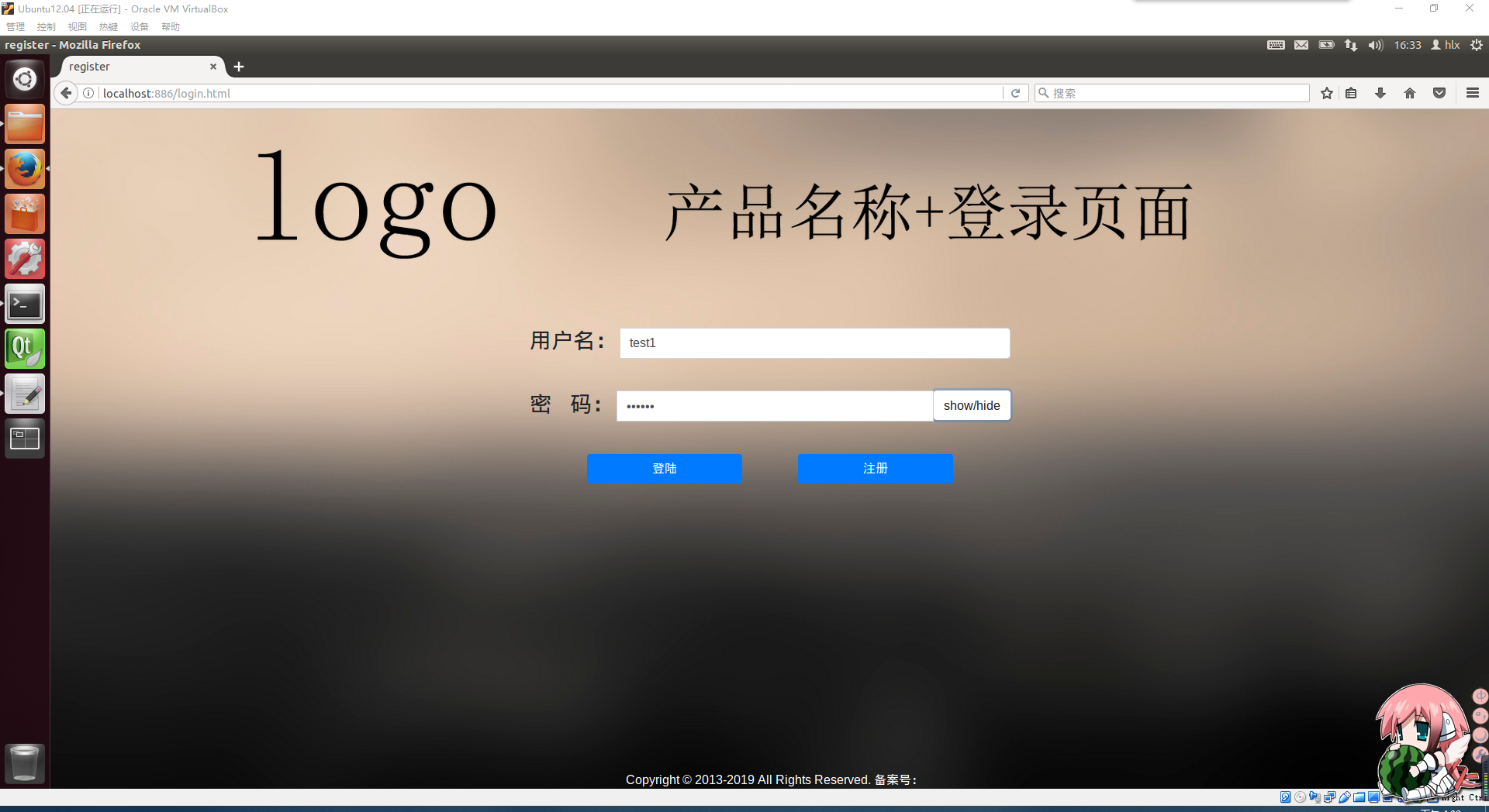开启boa服务器后,我们访问到我们在 /var/www 下编写的HTML文件,显示我们的登录页面。