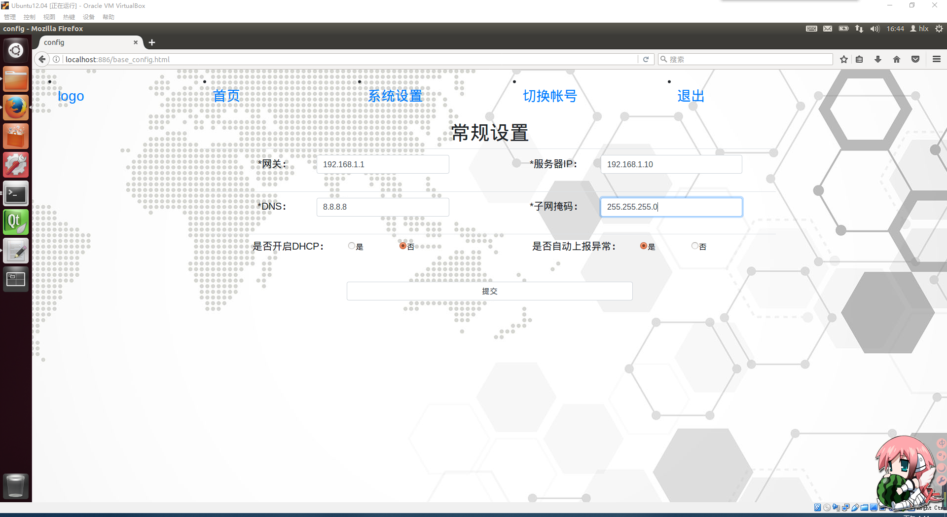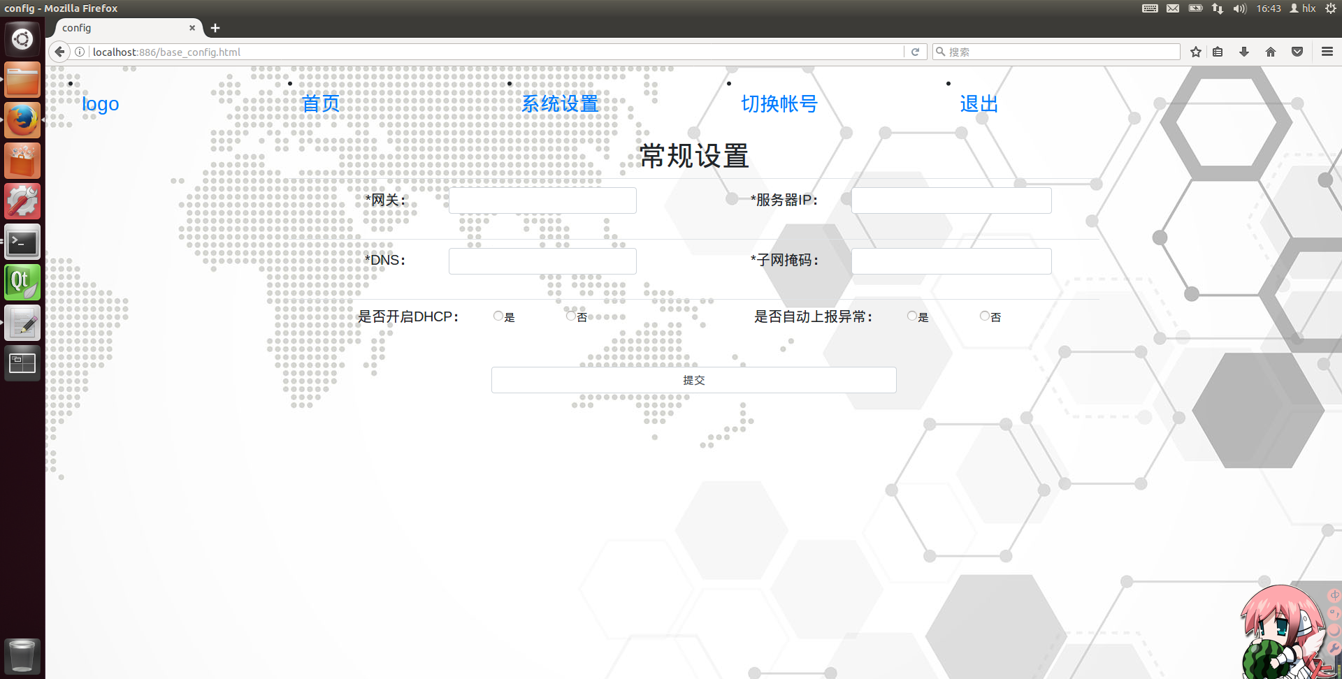 现在我们输入数据,点击“登录”,同理将表单发给 login.cgi ,对数据在MySQL数据库中查询后,成功就来到base_config.html 配置页面。